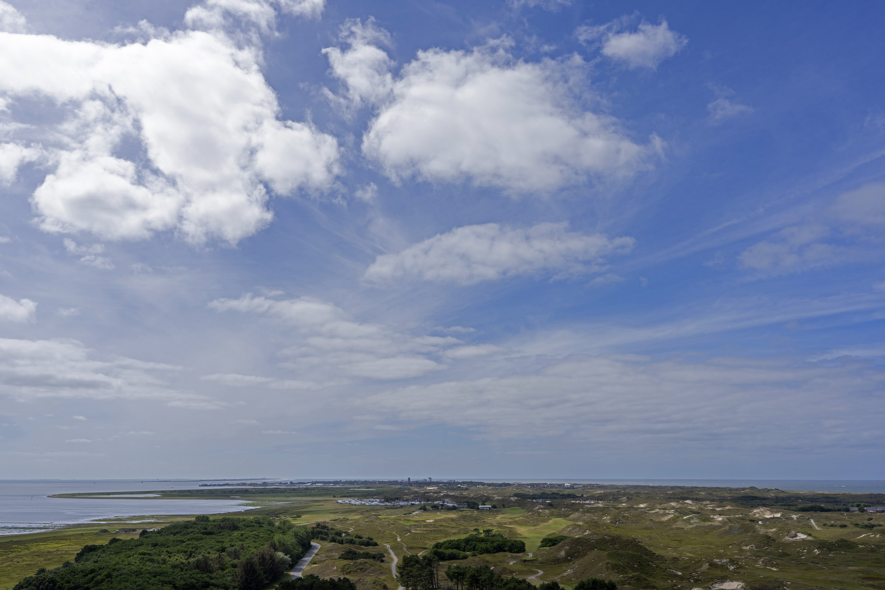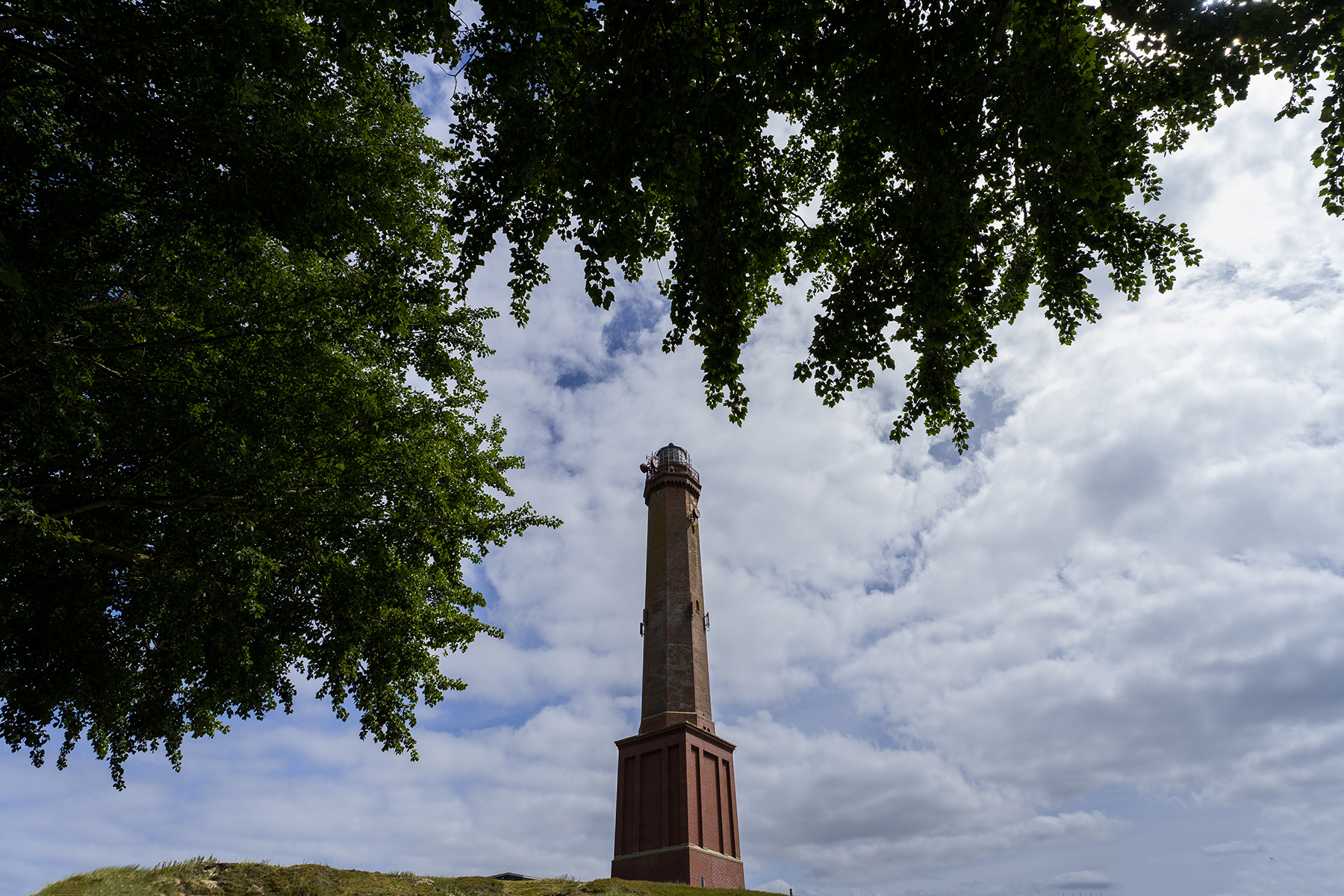 Der weißgraue Himmel begleitet uns bei der Weiterfahrt zu den Leuchttürmen von Campen. Er ist mit 65,3 m der höchste in Deutschland, und diese Höhe lässt sich mit dem Ultraweitwinkelzoom bestens in Bild holen, …
