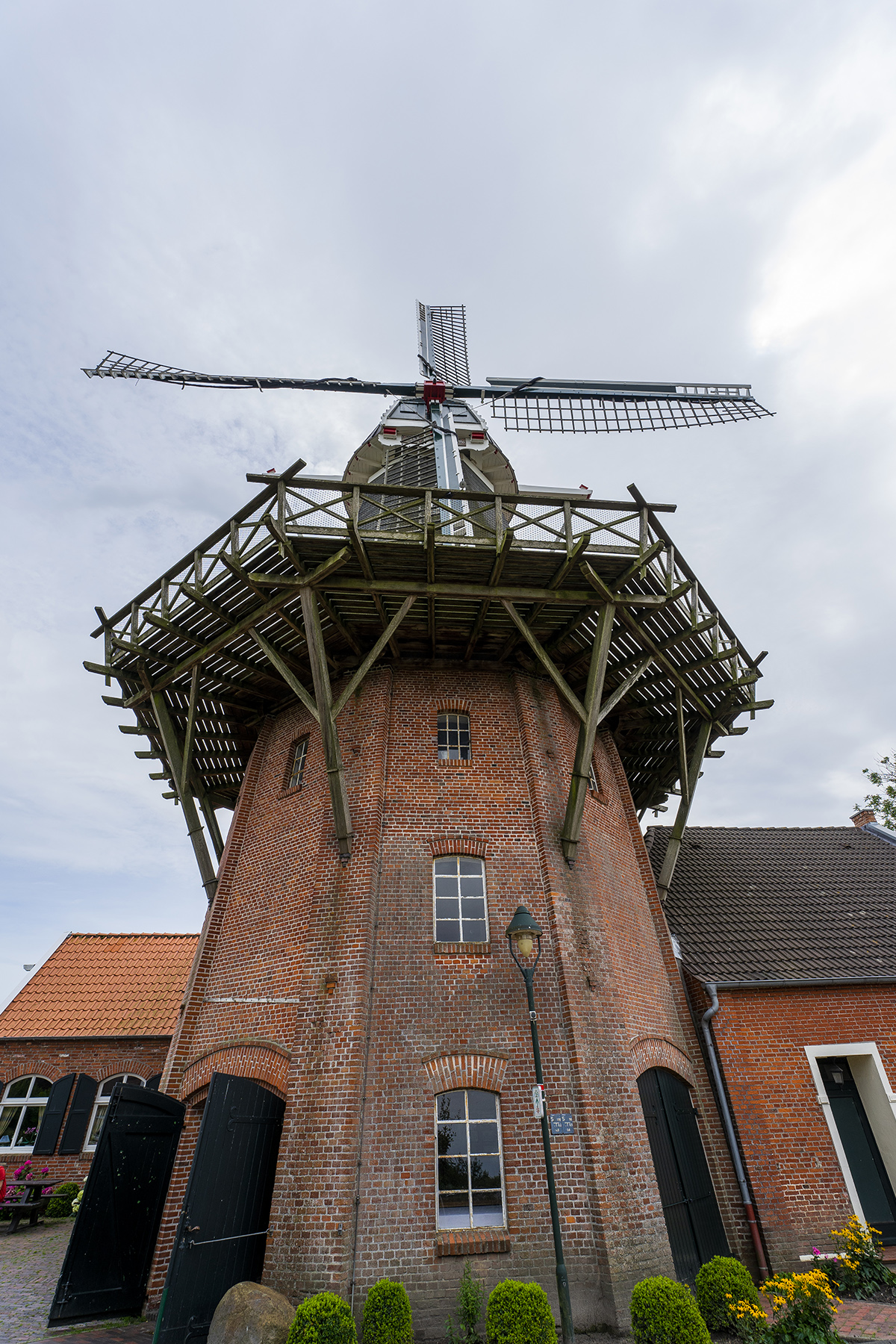 Für die Außenaufnahmen ist der grauweiße Himmel eher unschön, bringt aber andererseits weiches Licht ohne störend harte Schatten und jeder Ziegel der alten Mühle kommt zu seinem Recht.