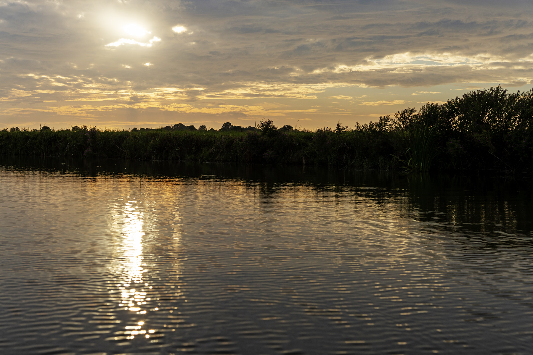 Zum Abend hin hat sich der bis dahin langweilig weißgraue Himmel gewandelt und zeigt einen fotogenen Sonnenuntergang.