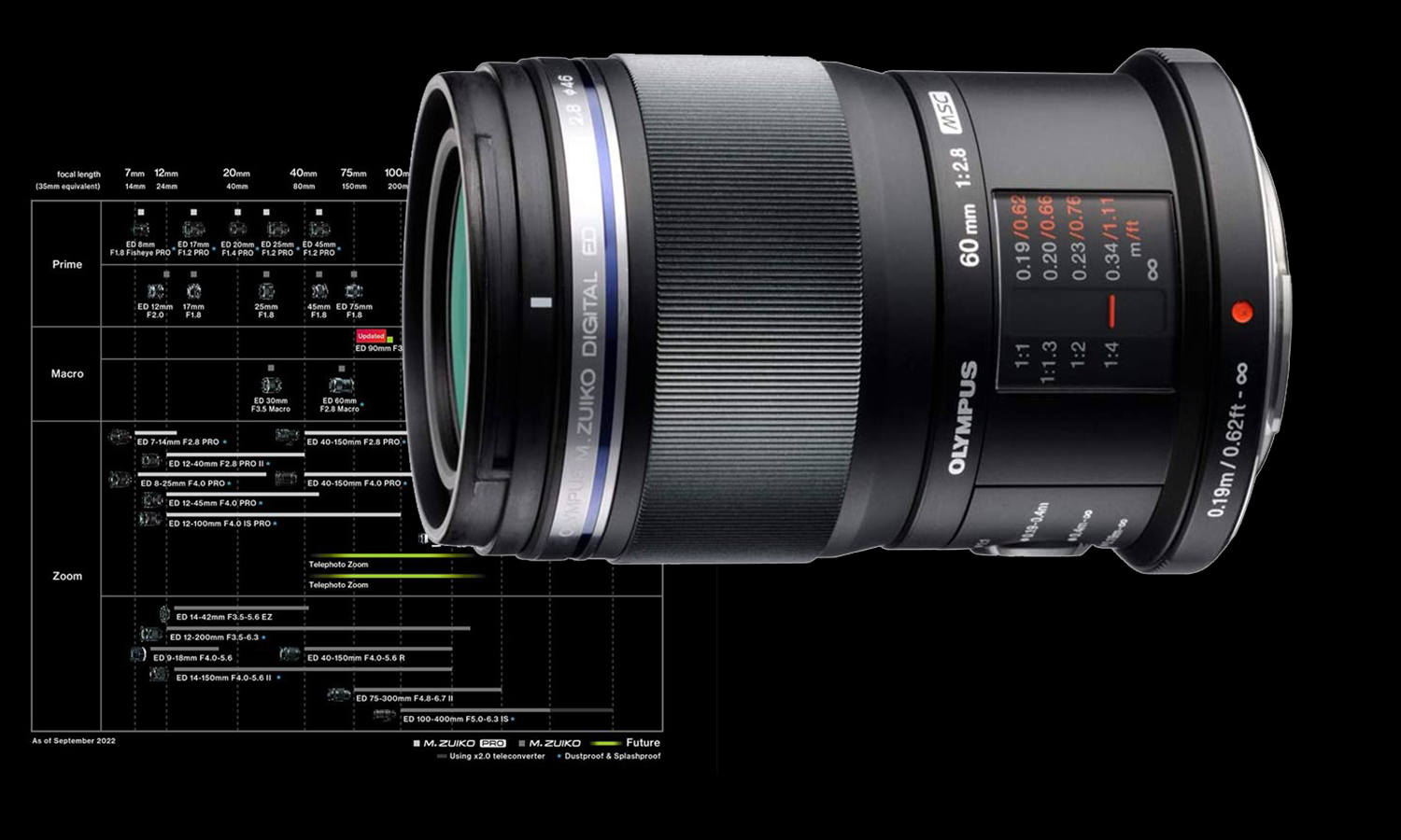 Mit dem M.Zuiko Digital ED 90 mm F3,5 Macro IS PRO wird OM Digital Solutions ein langes Makroobjektiv (180 mm [@KB]) auf den Markt bringen.