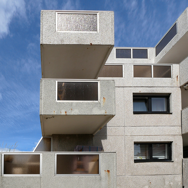 … finden wir auch moderne Betonklötze …