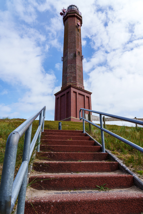Auch an der nächsten Location kommen die gläsernen Effektbringer zum Einsatz. Der Bildwinkel, den eine solche Kugel erfasst, ist groß genug, um den 1889 gebauten Leuchtturm von Campen ganz zu erfassen. Mit 65,3 m ist er der höchste in Deutschland.