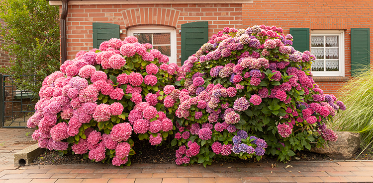 Erster Stopp ist Rysum, ein typisches Warftendorf mit einem runden Ortskern. Entlang der entsprechend kreisförmig verlaufenden Straße fallen große Hortensienbüsche auf …