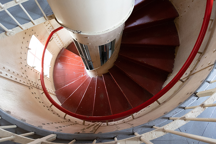 … und auch innen lassen sich Motive finden, wie etwa die Balken, die den Boden des oberen Stockwerks mit der Laterne (die nicht mehr in Betrieb ist) tragen.