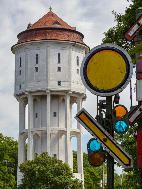 Von hier aus hat man auch einen schönen Blick auf den alten Wasserturm. Er wurde von 1910 bis 1912 erbaut und vereint Nützlichkeit und architektonische Schönheit.