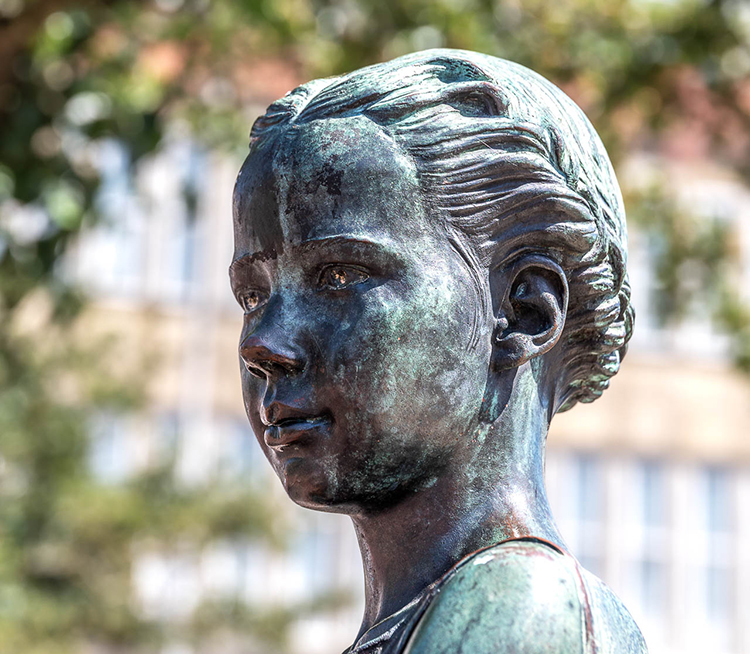 Nur ein paar Schritte weiter und man ist am Hafen, wo die kleine Statue der Jantje Vis, eines Emder Fischermädchens, steht …