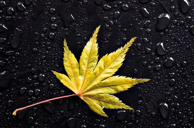 Eine der eher nicht so gern gesehenen Begleiterscheinungen des Herbstes ist Regen, der zu allem Überfluss nicht nur nass, sondern auch kalt ist. Mit der passenden Kleidung und einer passenden Kamera kann man auch in dieser Witterung draußen fotografieren und zum Beispiel Herbstlaub auf glänzendem Asphalt oder Pflaster aufnehmen. Wenn sich zudem Lichter in der feuchten Fläche spiegeln, gibt das dem Bild einen besonderen Pfiff. Solchen Motiven tut eine etwas knappere Belichtung gut.