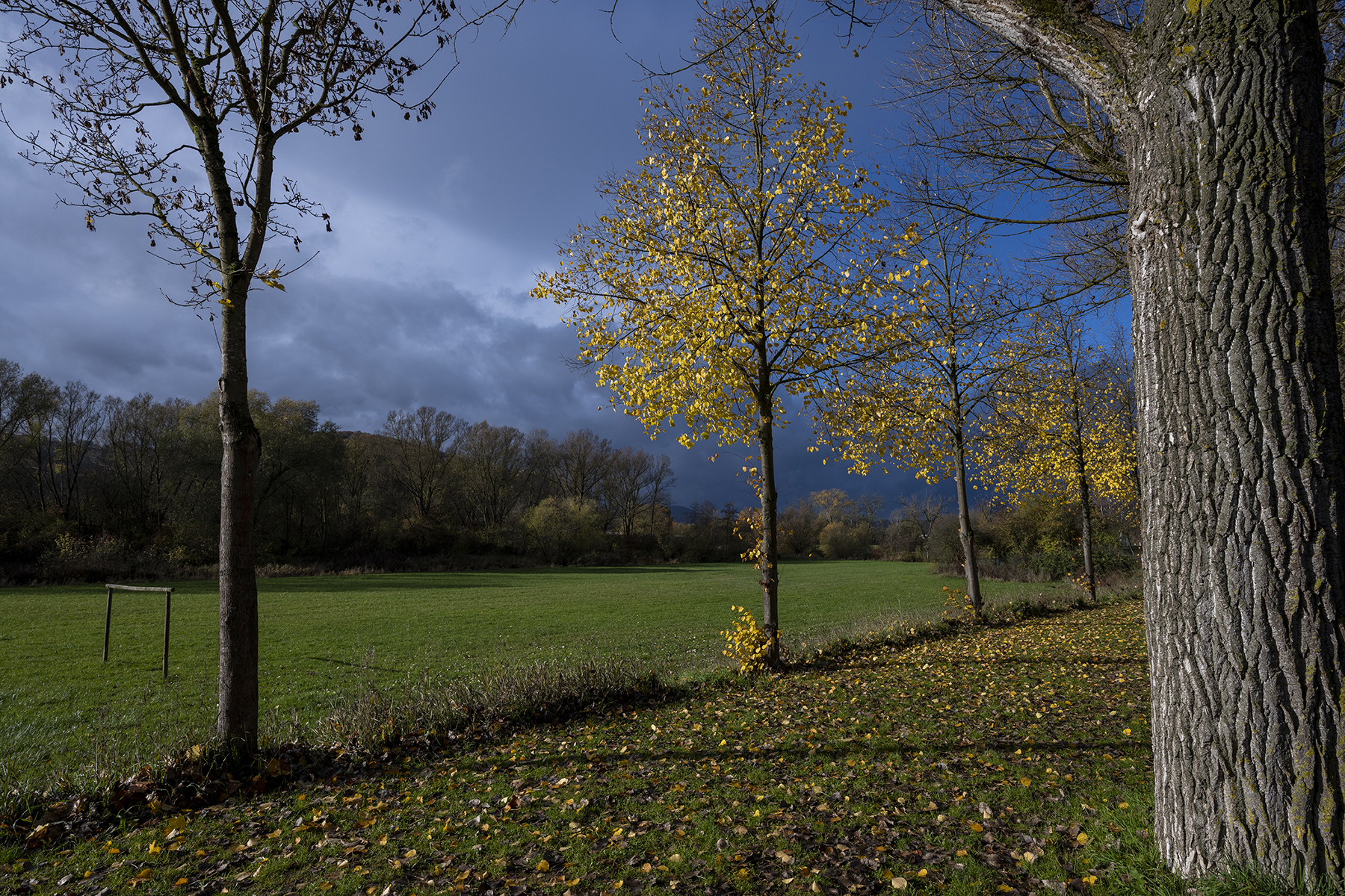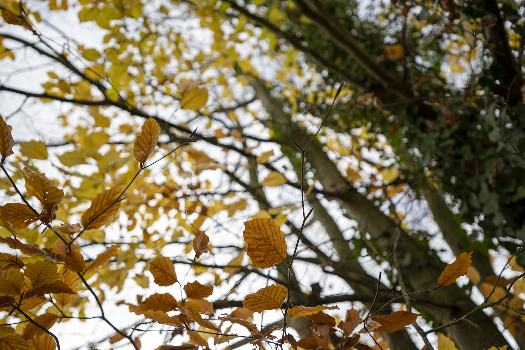 Die große Blende half, die kurze Verschlusszeit zu erzwingen. Und die wiederum war wichtig, um die Bewegung der Blätter im Wind einzufrieren. Außerdem bringt Blende 2,8 ein angenehmes Bokeh.
