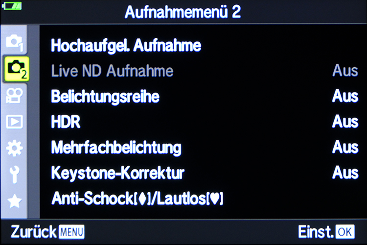 HDR- und Intervallaufnahmen sowie Mehrfachbelichtungen sind möglich.