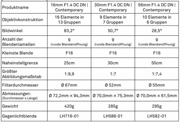 Dabei handelt es sich nicht um komplette Neunentwicklungen. Die drei DC DN Objektive wurden zunächst mit mFT- , Sony E- und Canon EF-M-Mount angeboten und seit letztem Jahr gibt es sie auch mit dem Fujifilm X-Mount.
