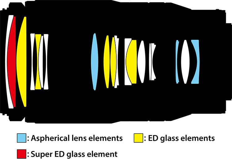 Das Zoom ist kompatibel zum TelekonverterTC-2,0x. Mit letzterem kann ein größter Abbildungsmaßstab von 0,96x erreicht werden. Damit wird der Makrobereich erreicht.