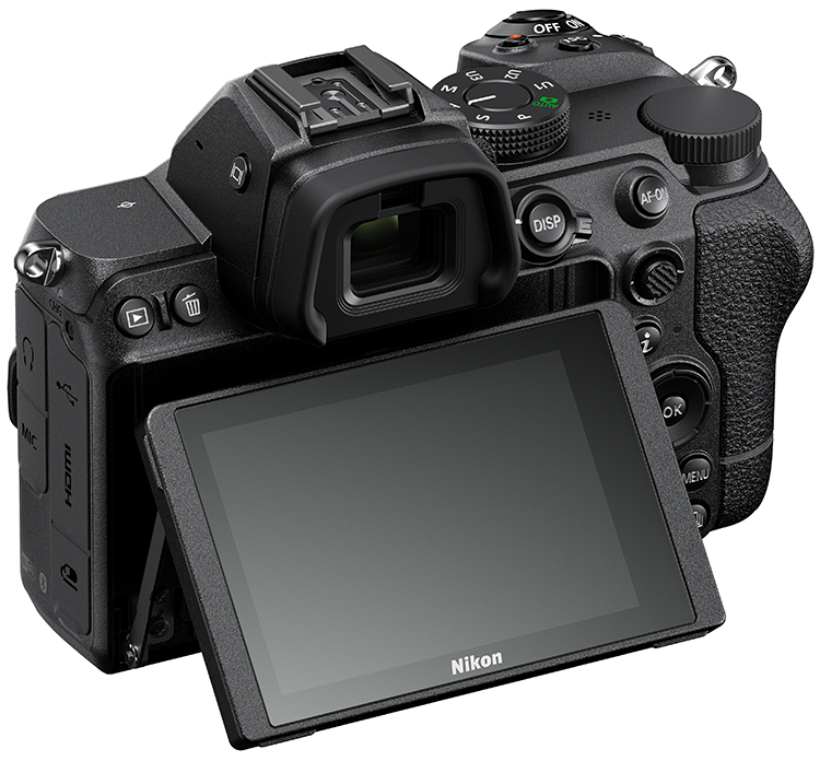 Hinter dem schon erwähnten runden Okular steckt natürlich kein optischer TTL-Sucher. Die Z fc verfügt über einen hochauflösenden elektronischen Sucher mit 2,35 Mio. RGB-Dots und einer Vergrößerung von 0,68x [@KB]. Er zeigt das Motiv klar mit natürlichen Farben – ebenso der Touchscreen-Monitor, der eine Diagonale von 3“ und eine Auflösung von 1,04 Mio RGB-Dots bietet. Er ist neig- und drehbar gelagert und ermöglicht dadurch Aufnahmen aus jedem gewünschten Winkel. Dreht man den Monitor nach vorn, wechselt die Kamera automatisch in den Selbstporträtmodus. Das ist ideal für private Selfies und professionelles Vloggen.