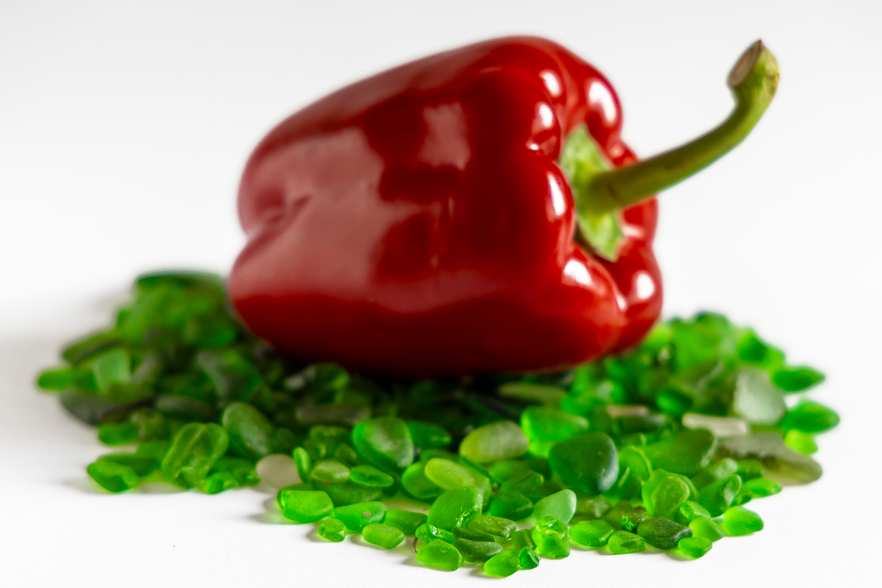 Eine Spielerei zum Thema „Rot und Grün“. Für das Grün im Bild sorgen vom Meer glattgeschliffene Flaschenscherben, die wir während eines d-pixx foto Workshops auf Helgoland gesammelt haben. Die Hohlkehle sorgt für einen „knickfreien“ Hintergrund.