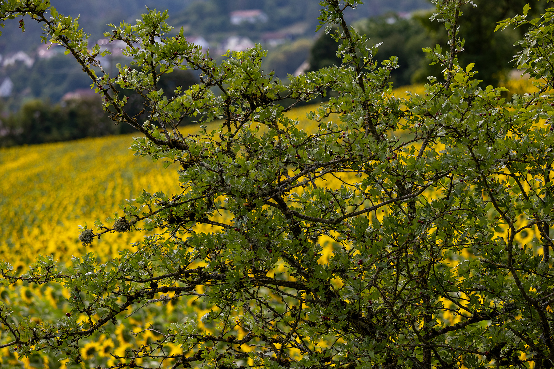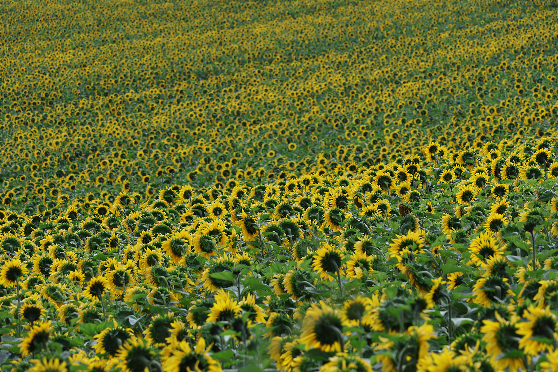 In den letzten Tagen fiel immer wieder ein Sonnenblumenfeld im Tal der fränkischen Saale nahe Hammelburg – der Heimat der d-pixx foto – auf. Aber nicht so gutes Wetter hielt mich davon ab, es im Bild festzuhalten. Heute war es anders.