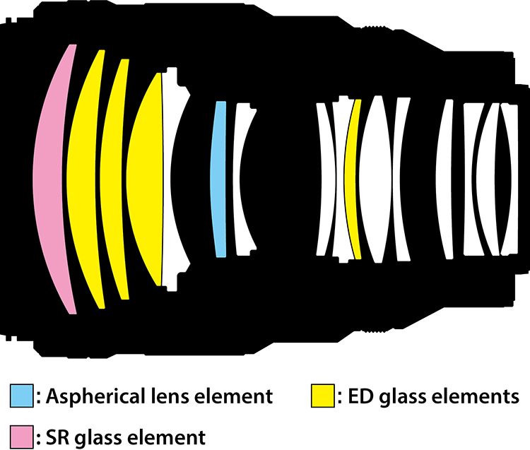 Dafür setzt Nikon auf ein Design mit elf abgerundeten Blendenlamellen und einen optischen AUfbau aus 16 Linsen in 14 Gruppen, die in Kombination Beugungsunschärfe minimieren und sagittalem Koma und sphärischen Aberrationen entgegenwirken sollen. Diese Optik beinhaltet Nikon SR-Glas-, ED Glas- und ein asphärisches Linsenelement.
