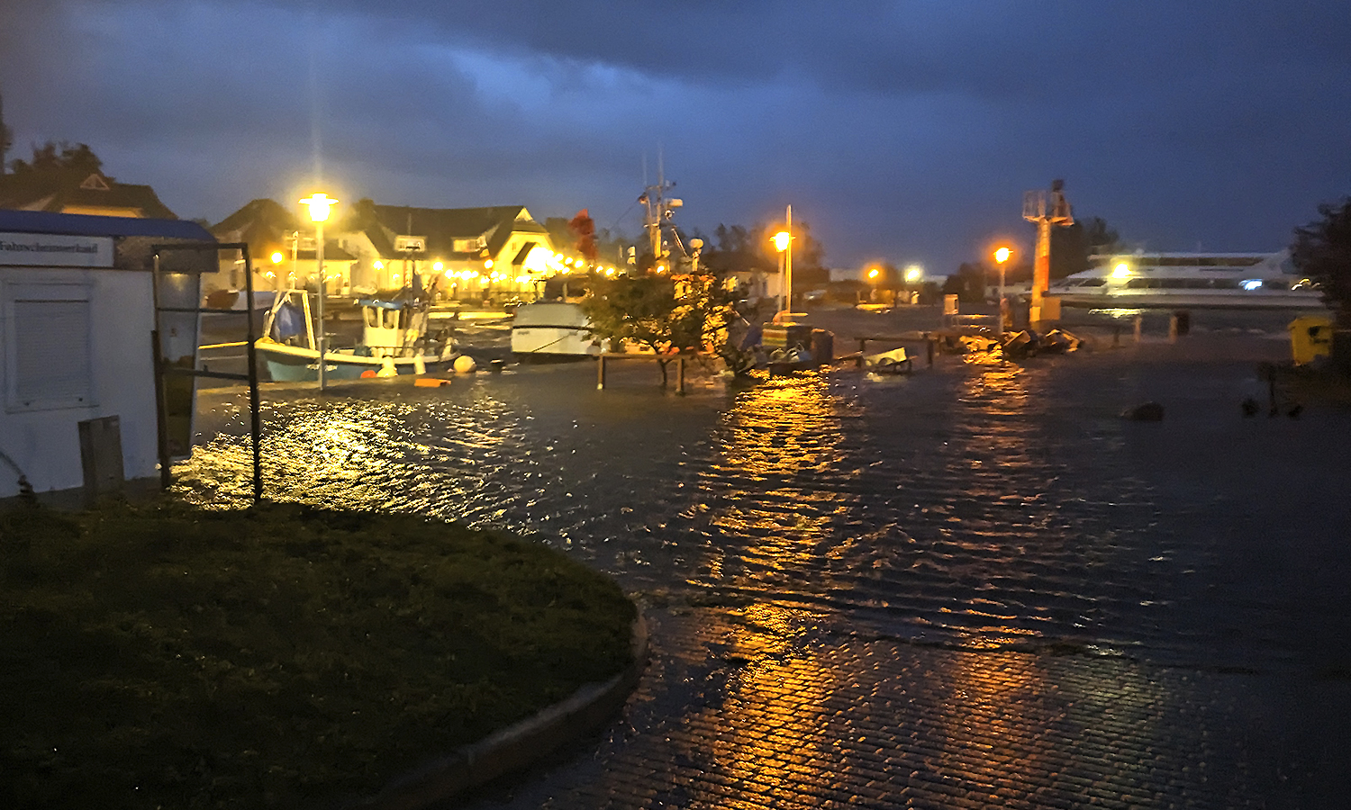 Als am 20. Oktober und in der Nacht zum 21. eine Sturmflut die Küsten der Ostsee traf, wurde auch Hiddensee nicht verschont. Robert Ott ließ zwar seine Kamera zu Hause, machte sich aber mit dem Smartphone auf den Weg, um zu zeigen, wie der Sturm in Vitte wütete und schickte uns spontan diese Bilder.