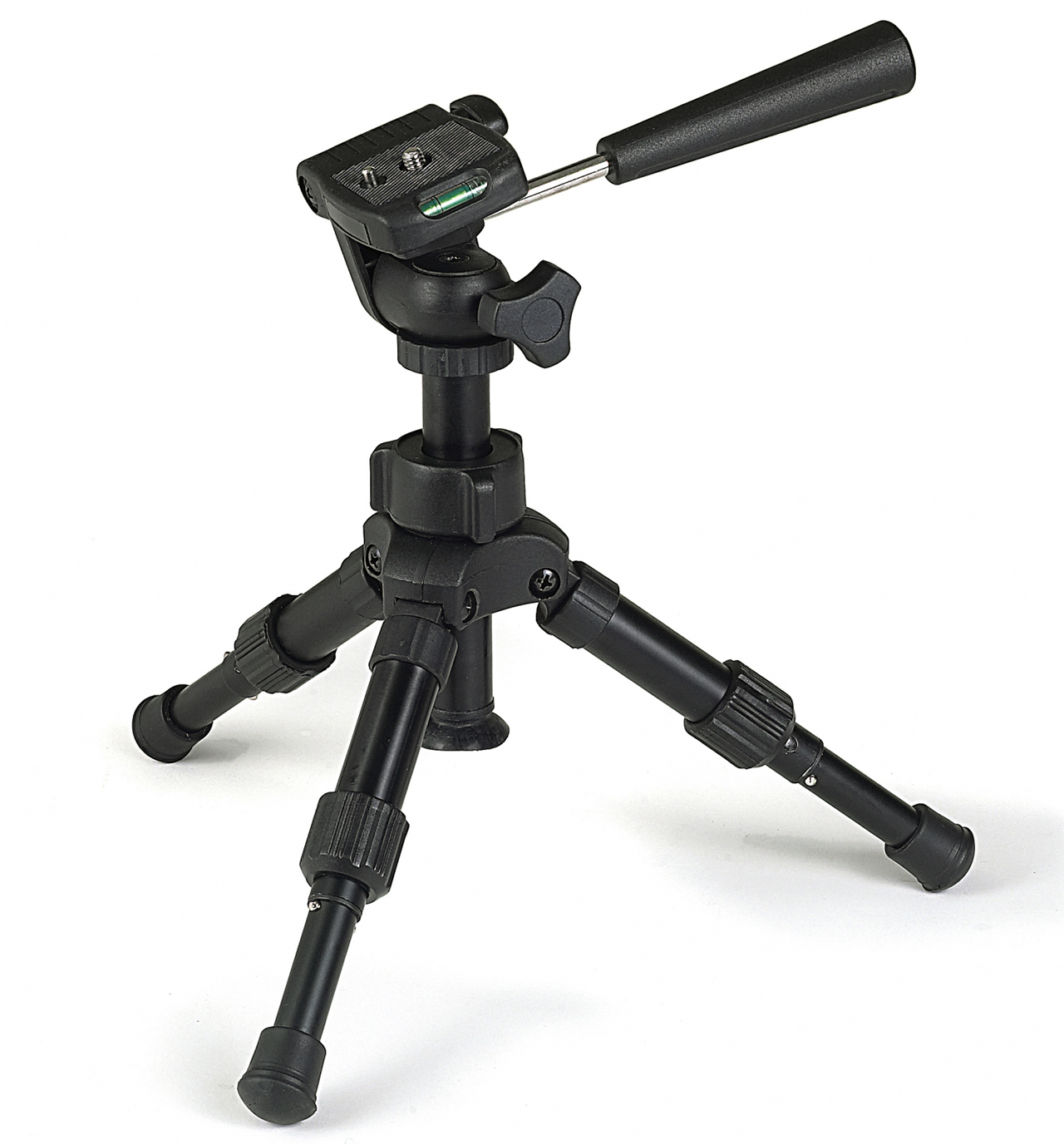 Sowohl die Leuchte wie auch die Kamera mit dem Duplikator setzt man auf Kleinstative, die man bequem auf dem Ess-, Wohnzimmer- oder Schreibtisch platzieren kann. Wie gemacht für diesen Einsatz sind die schlanken, leichten Alustative MiniProp 6 und solid3+, zu denen jeweils der kleine Kugelneiger 2fix genau passt. Eine Alternative ist das Kamera-Tischstativ DSLR aus robustem Kunststoff, das gleich mit einem Schwenk-Neige-Kopf geliefert wird.