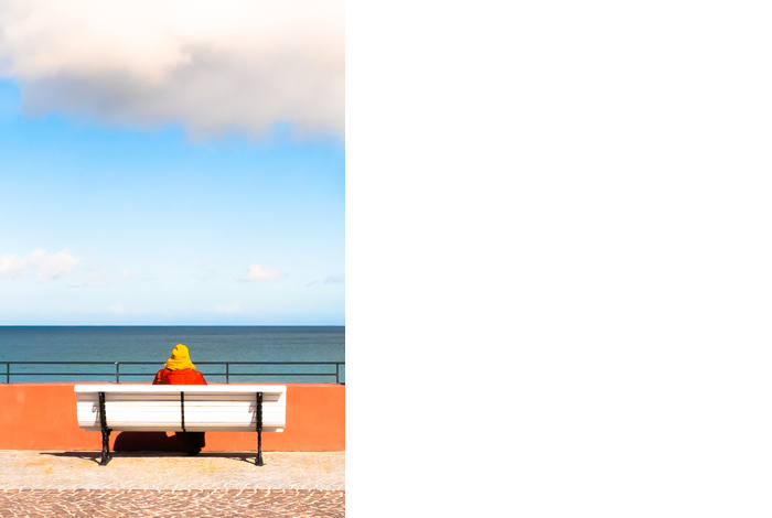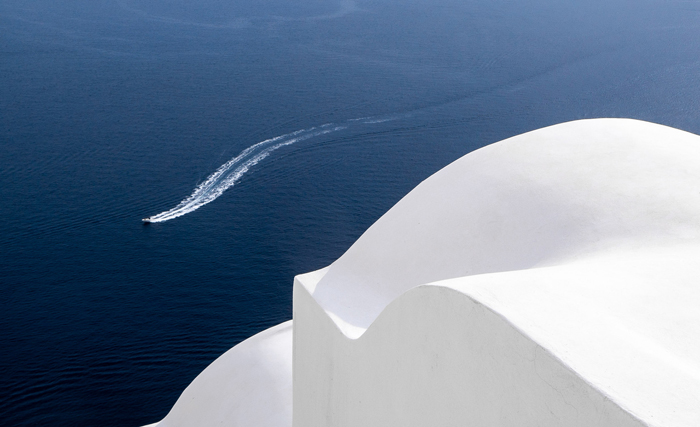 Bei meinem ersten Foto wirkt schon alleine der Kontrast des weißen Hauses zum dunkelblauen Meer, noch wichtiger ist hier aber die Linienführung. Man muss schon ziemlich gut fotografieren können, um solch einen Ausschnitt aus einer Szene zu fotografieren, dann noch ein Boot hinzuzufügen, das der Linie des Daches folgt und das Ganze dann zu einem Wettbwerb einzureichen.
