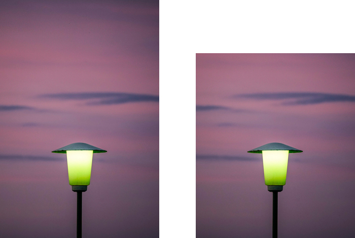 Jetzt kann ich das Bild so schneiden, dass beide Bäume angeschnitten sind und alles symmetrisch ist. Man könnte natürlich auch die Stämme ganz wegschneiden und sich damit eine Menge Arbeit sparen,… aber das war mir dann doch zu einfach.