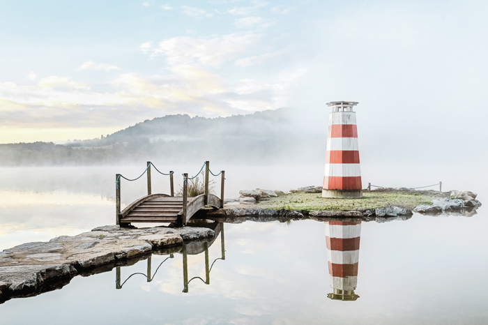Auch meine persönliche „Top 1“ möchte ich an dieser Stelle unbedingt zeigen. Es hat mich schier umgehauen, weil ich es von Gestaltung und Look her einfach grandios finde. Das liegt ganz sicher auch daran, dass der Look, in dem ich meine Bilder gestalte, ziemlich genau so aussieht. Als ich das Foto gesehen habe, hab ich erstmal gegoogelt, ob mir hier vielleicht jemand einen KI-Schuss als Wettbewerbsbeitrag untergejubelt hat … ich konnte mir als Nordlicht nicht vorstellen, dass es einen so kleinen Leuchtturm gibt, der auch noch auf einer winzigen Insel in einem See steht.