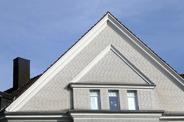 Ich zeige hier zum Vergleich mal ein Foto, das ich schon mehrfach über eine Bildagentur verkauft habe. Es wirkt so plakativ, weil ich es eben direkt von vorne und so wenig wie möglich von unten fotografiert habe. Der große Freiraum oben ist übrigens dafür da, dass ein Layouter auch einen umfangreicheren Text oder eine große Headline unterbringen kann, wenn er das Bild für seinen Artikel kauft. Kleiner Tipp : wenn man einen solchen Frontalschuss macht, am besten möglichst weit von dem Haus entfernen und wenn dann nötig, wieder etwas reinzoomen. Dadurch wird der Winkel zwischen Kameraposition und der Horizontalen spitzer und das Foto verliert dadurch ungewollte Perspektive.