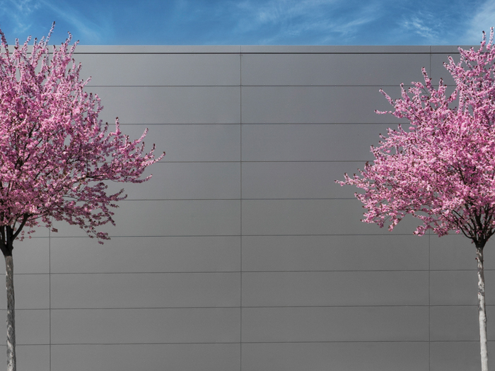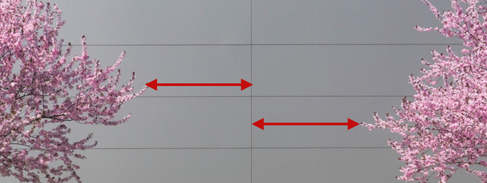 Um die Symmetrie-Wirkung noch weiter zu steigern schiebe ich auch noch den rechten Baum so weit nach links, dass er genau so weit von der Mittellinie entfernt ist wie der linke und helle das Bild insgesamt noch etwas auf.