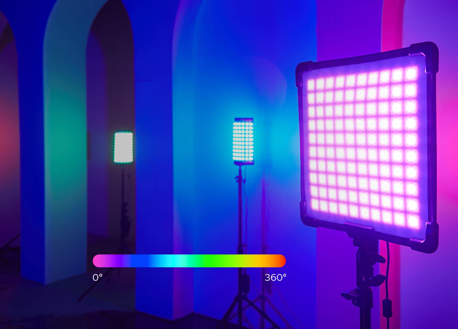 Der FH50R verfügt über einen HSI-Farbmodus, der eine Auswahl von 36.000 Farben bietet und einen Farbtemperaturbereich von 2.500 bis 10.000 K abdeckt. Bei der FH50Bi-Version sind es 2.800K – 6.500 K. Der FH50Bi ist mit 11 integrierten FX-Effekten ausgestattet, während der FH50R über 14 FX-Effekte verfügt.