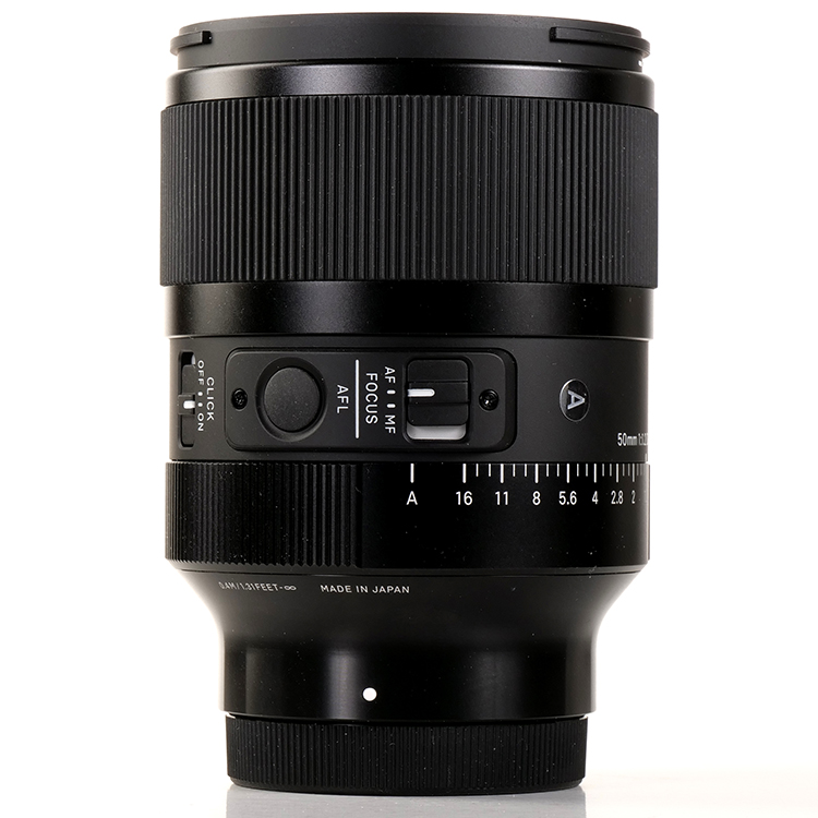 Ich mag Blendenringe, und das Sigma 50 mm 1:1,2 DG DN | Art bietet einen, der wunderbar geschmeidig zu drehen ist und sauber in 1/3 Schritten von 1:1,2 bis 1:16 einrastet. Er lässt sich für Aufnahmen mit Blendenautomatik in die A-Position bringen und dort mit einem Schalter auf der rechten Seite arretieren.