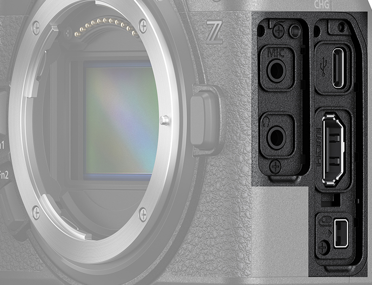 Für den Kontakt zu anderen Geräten bietet die Z 6III einen USB-C-Super-Speed- und einen HDMI A 2.1-Anschluss, dazu WiFi und Bluetooth.