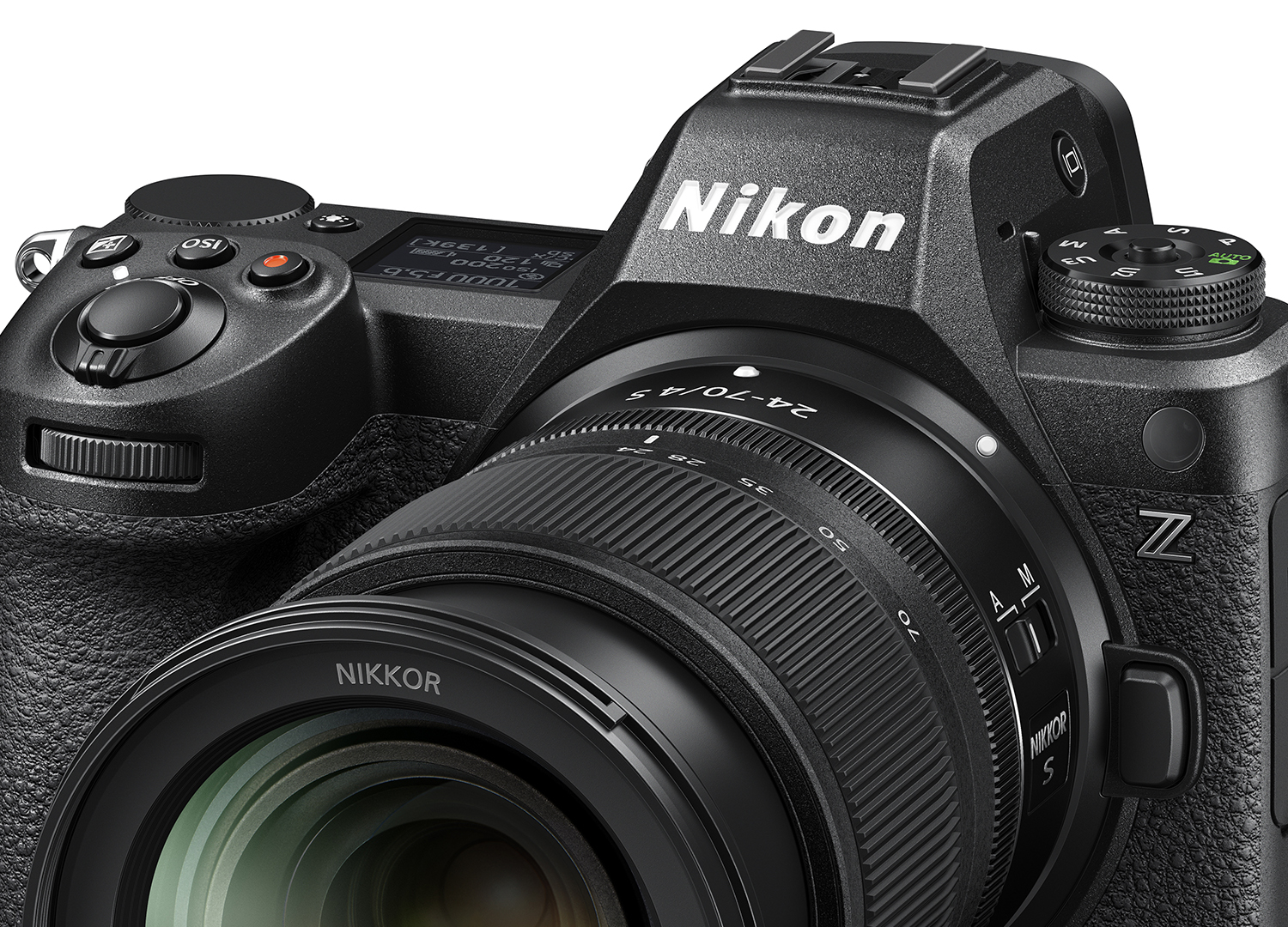 Wesentliche Elemente sind der Statusmonitor der rechten Schulter, das zweite Einstellrad im Bereich des rechten Daumens, der gut dimensionierte Mini-Joystick für die Positionierung des AF-Feldes schräg darunter, und auf der Vorderseite die beiden Fn-Tasten zwischen dem Griff und dem großen Z-Bajonett.