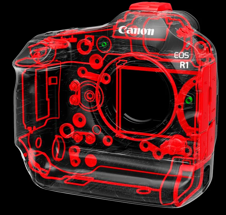Herzstücke der neuen Canon EOS R1 sind der neue entwickelte CMOS-Sensor in BSI-(Backside Illuminated)-Stacked-Technik, der eine Auflösung von 24,2 MPix aufweist, der DIGIC X Prozessor und zu seiner Unterstützung der DIGIC Accelerator.
