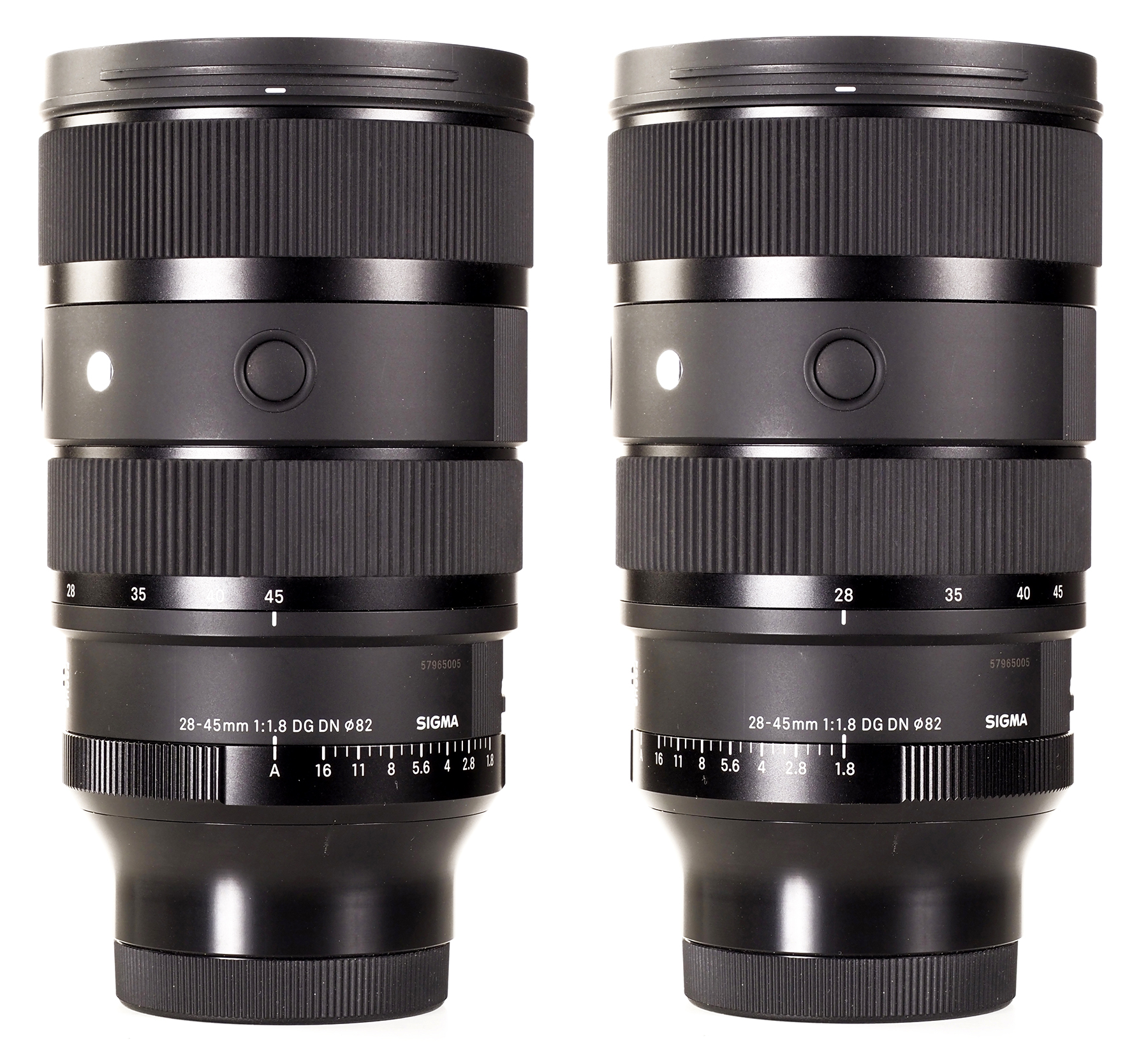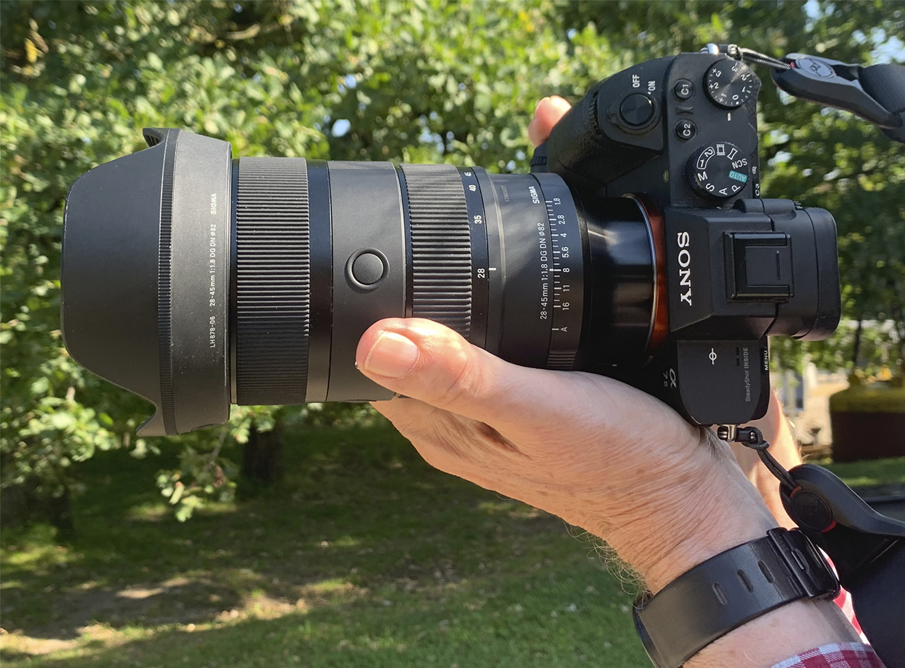 Beim 28-45 musste es wohl sein. Mit einer Länge von 154 mm, die beim Fokussieren und Zoomen gleichbleibt, einem Durchmesser von 88 mm (Tubus) bzw. 106 mm (Streulichtblende) und einem Gewicht von 950 g ist es definitiv kein zierliches Leichtgewicht. Dafür ist es aber definitiv durchgehend lichtstark (1:1,8 bei allen Brennweiten). Zudem bietet es bei allen Brennweiten und Blenden über das ganze Bildfeld eine Leistung, die ihm im Test die Bestnote „Exzellent“ einbrachte.