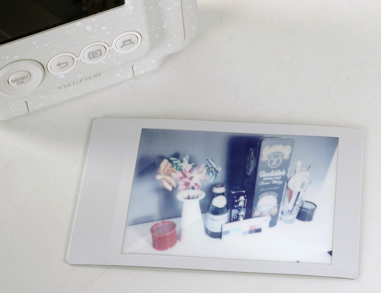 Die mini LiPlay wird mit dem Sofortbild-Film Instax mini geladen. Außer mit dem klassisch weißen Rand gibt es Filme mit einfarbigen und gemusterten Rändern. Eine Besonderheit der Film mit ISO 800.