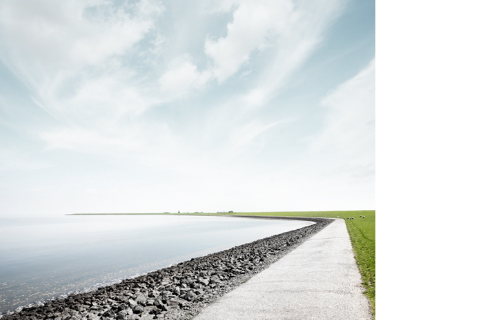 Nicht weniger irreführend sind dominante diagonale Linien im Bild (Auch dies ist kein Wettbewerbsbeitrag sondern eines meiner Urlaubs-Fotos). Es ist so gut wie unmöglich den Horizont dieser Location im Sucher ohne eingeblendete Wasserwaage korrekt auszurichten. Auch hier muss der Horizont gerade ausgerichtet sein, auch wenn er vielleicht nur in einem Sechstel des Bildes zu sehen ist. Nicht durch die Deichkante täuschen lassen … die gehört natürlich nicht zum Horizont sondern steigt nach rechts leicht an.