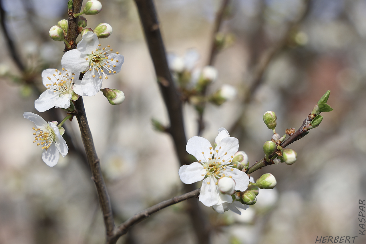 Besonders Blüten an Büschen oder Bäumen kommen gut ins Bild, wenn der Hintergrund gleichmäßig ist und sie nicht mit Ästen, Zweigen und anderen Blüten im Hintergrund konkurrieren müssen. Ein Weg, für diesen Hintergrund zu sorgen, ist, einen Standort zu suchen, der den Himmel als Hintergrund ins Bild bringt. Dafür kann es dann nötig sein, steil nach oben zu fotografieren, was durch Live-View und einen beweglich gelagerten Monitor einfacher wird. In der Regel wird ein blauer Himmel als optimal empfunden. Aber auch ein weißer Himmel, der ansonsten von Fotografen eher gefürchtet wird, kann praktisch sein, da er weiches Licht bringt. Eine etwas reichlichere Belichtung sorgt dann für eine „leichte und duftige“ Wirkung.