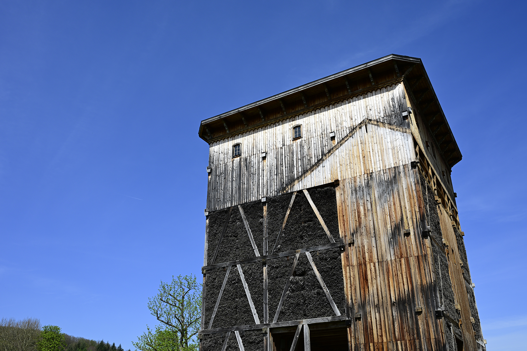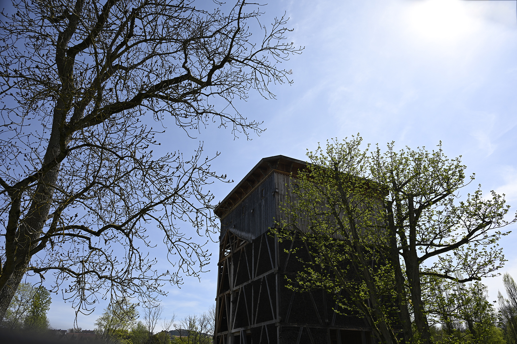 Der Turm des Gradierwerks in Bad Kissingen einmal in Farbe …