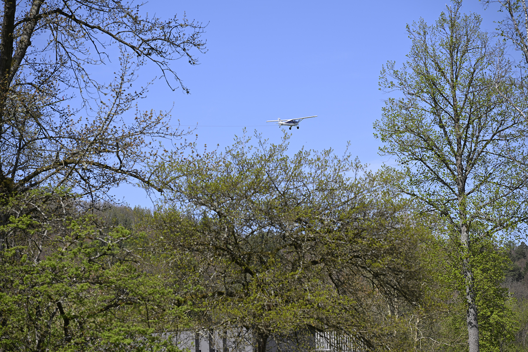 Der Flieger kam überraschend – keine Zeit, die entsprechende AF-Motiverkennung zu aktivieren. Aber auch mit dem kleinen AF-Feld war die Scharfstellung kein Problem.