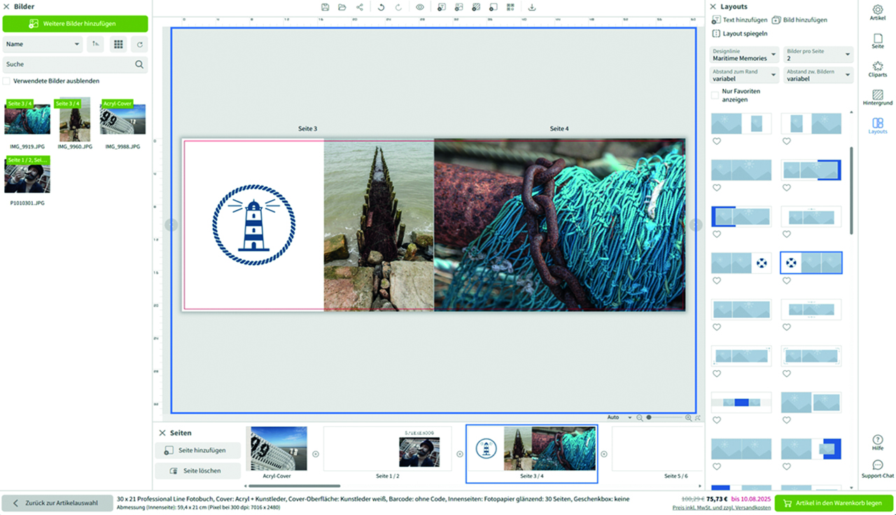 Die Software bietet eine Vielzahl von Möglichkeiten, die Bilder effektvoll auf den Seiten anzuordnen …