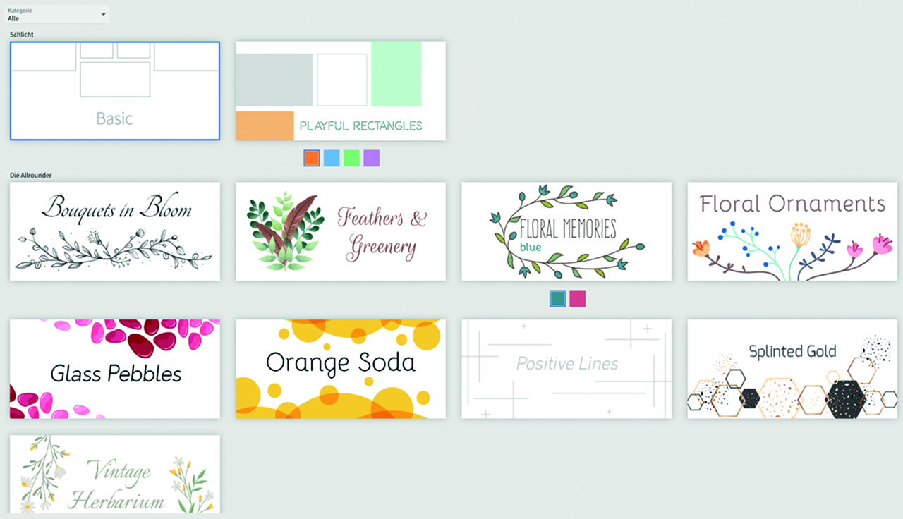 … und dazu viele Vorlagen zu den unterschiedlichsten Themen, mit denen man die Seiten aufpeppen kann.