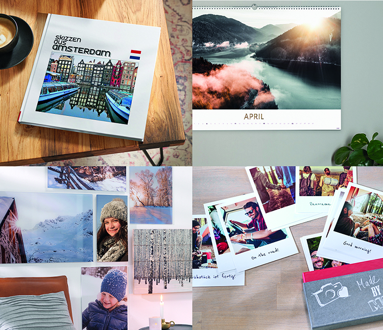 Klassiker sind Fotobücher und große Wandbilder auf Leinwand, Alu Dibond oder Acrylglas. Aber auch mit einem Kalender oder Retro Prints kann sie viel aus ihren digitalen Fotoschätzen machen.