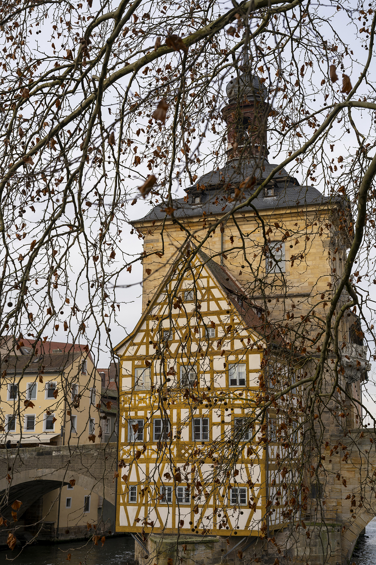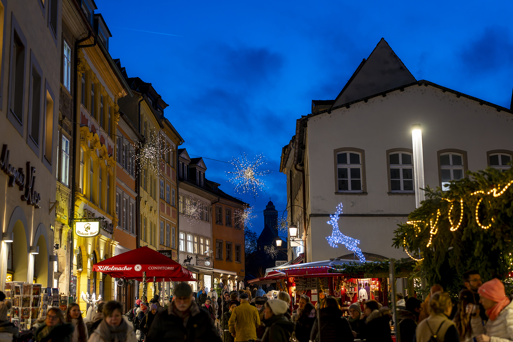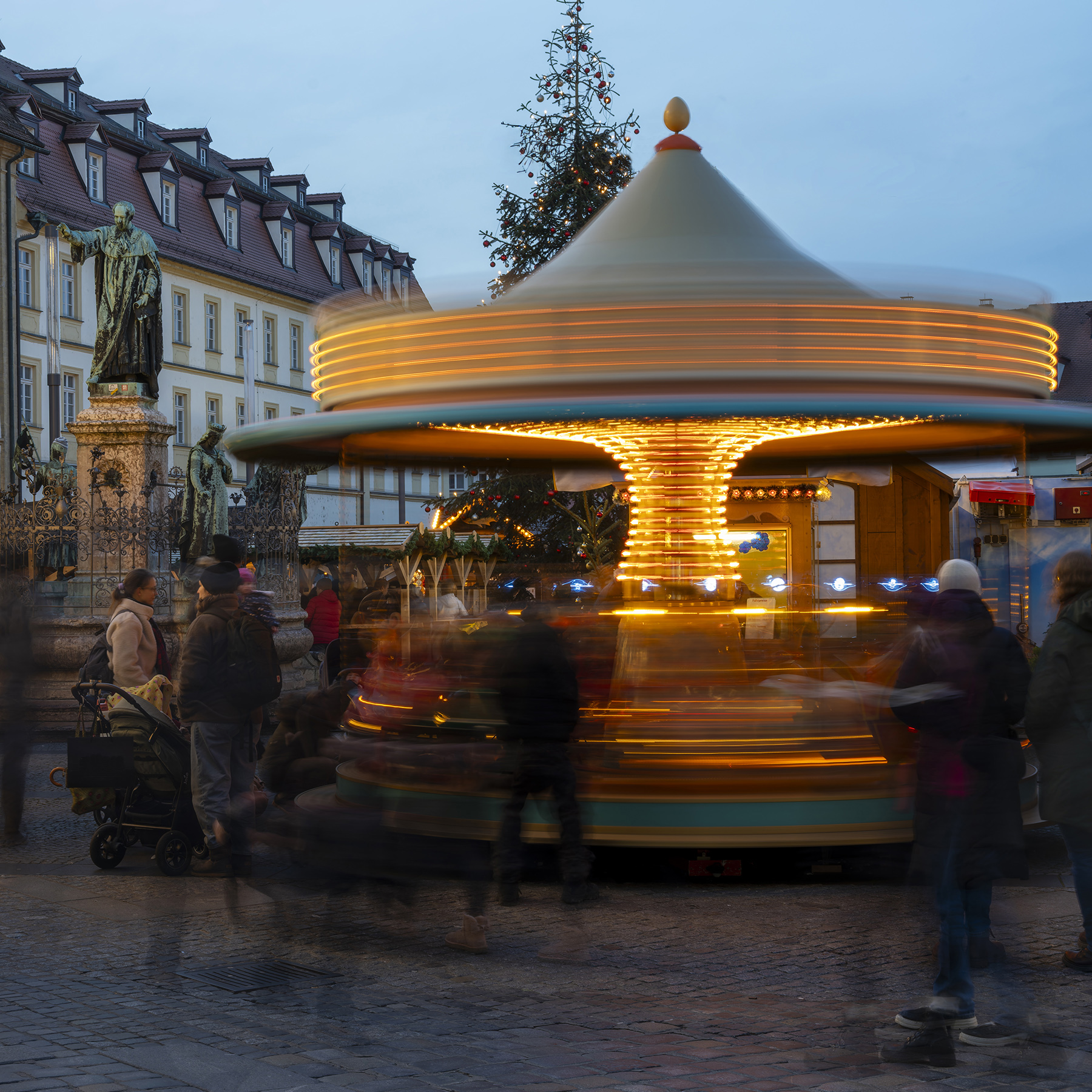 Das alles kam mir in den Sinn, als es um einen Ausflug nach Bamberg ging. Nachdem uns die Altstadt bei einem Besuch im Sommer ausnehmend gut gefallen hatte, wollten wir noch einmal dort bummeln und jahreszeitgemäß über den Weihnachtsmarkt schlendern. Weihnachtsmarkt am helllichten Tag kann auch ok sein – aber stimmungsvoller ist es ab Einbruch der Dämmerung und genau das wollten wir. Aber Weihnachtsmarkt mit einer für Langfinger verlockend vollen Fototasche? Lieber nur ein Gehäuse, ein Objektiv und für ein paar Aufnahmen mit verwischten Passanten noch ein Stativ.