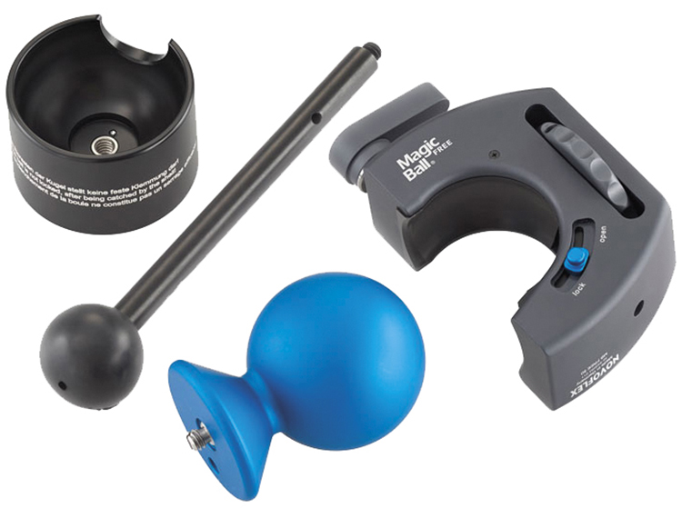 Mit den MagicBall Free Modellen hat Novoflex den Kugelkopf neu gedacht. Das Gehäuse wird aufs Stativ geschraubt, die Kugel an die Kamera oder ans Objektiv und wird damit zur Schnellwechseleinheit. Die Kugel kann dann schnell ins Gehäuse gesetzt und wieder daraus entnommen werden.