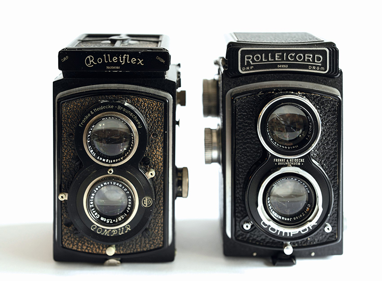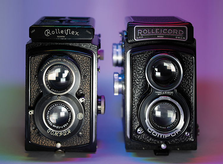 Für die beiden alten Kameras wurde zunächst nur der Hintergrund mit Tageslicht aus der Pavotube beleuchtet, dann sorgte eine LitoLite 5C für hartes frontales Licht und die Pavotube für den ein- bzw. mehrfarbigen Hintergrund.