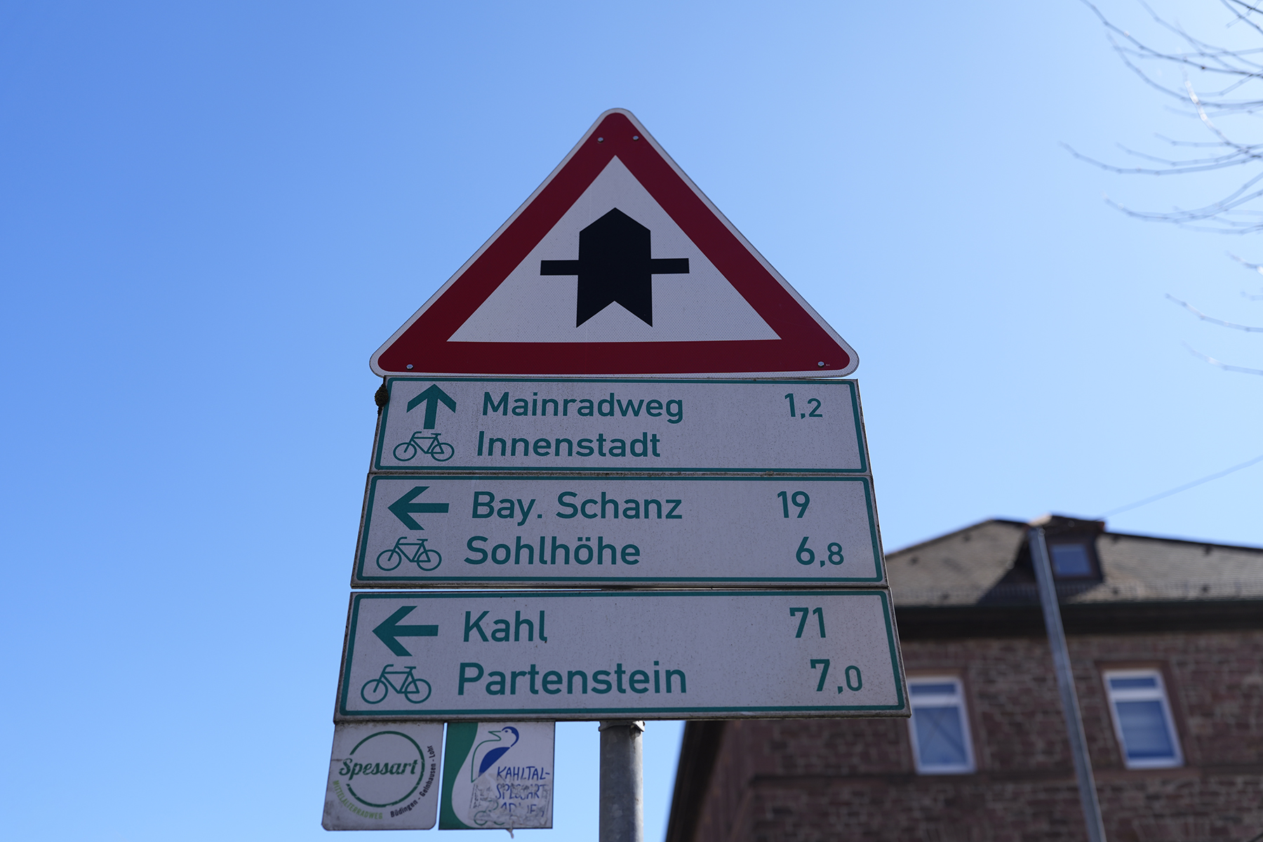 Nachdem ich mich überzeugt habe, dass der Akku geladen und die Speicherkarte wirklich eingesetzt ist (ich kenne mich inzwischen) fahren wir die rund 36 km bis zur Kreuzung nach Lohr am Main (der Zusatz ist wichtig, da es mehrere Orte namens Lohr gibt), die wir normalerweise geradeaus überqueren, um Freunde im Spessart zu besuchen oder zum Frankfurter Flughafen zu fahren. Dieses Mal biegen wir links ab in die Ludwigsstraße, wo wir tatsächlich auch gleich einen Parkplatz finden.