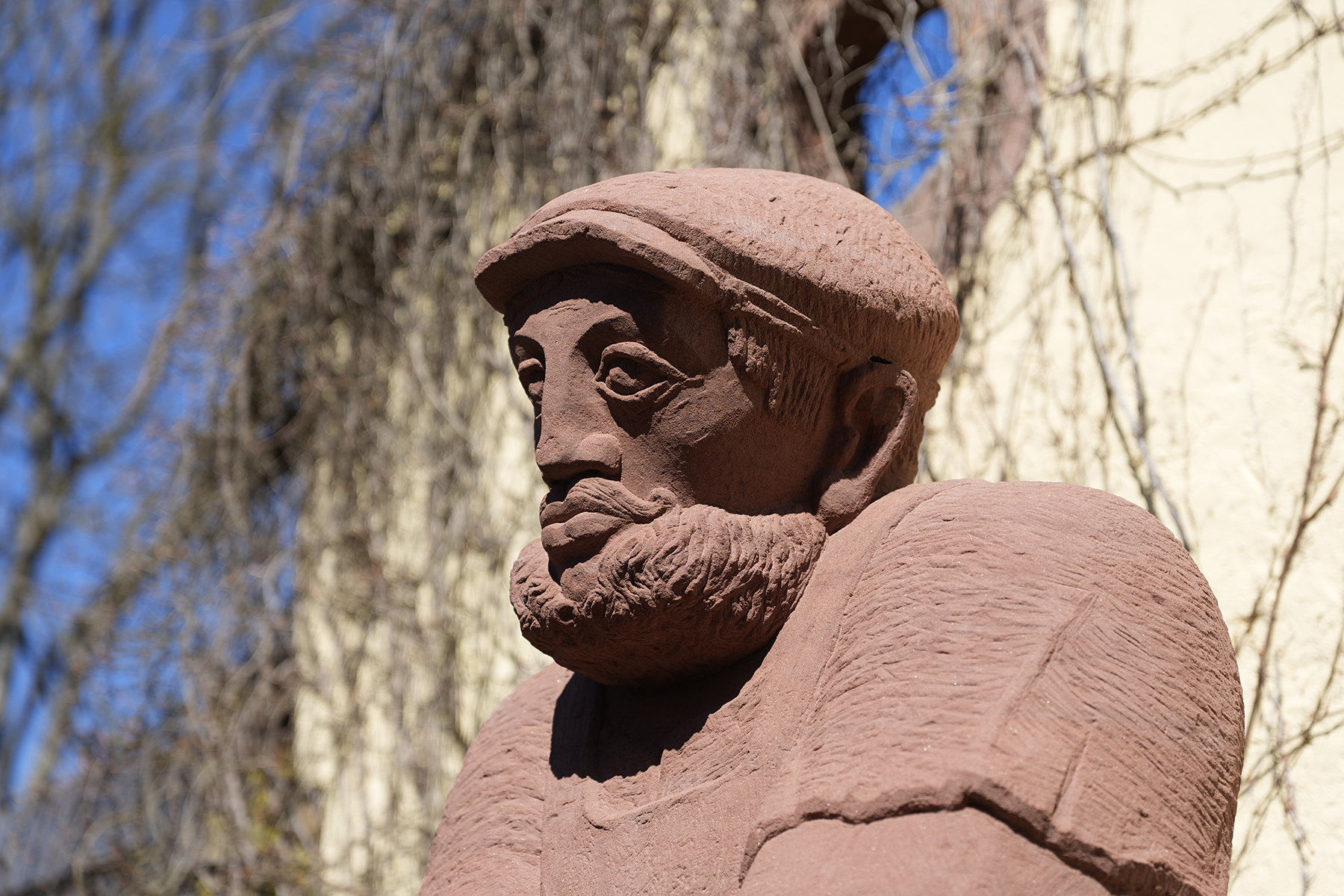 Wo die Steinmühlgasse in die Fischergasse mündet, steht er dann. Er mag keine Schönheit sein, aber er ist ein kerniger Typ – der bärtige Mann, der den Fischerbrunnen bestimmt.