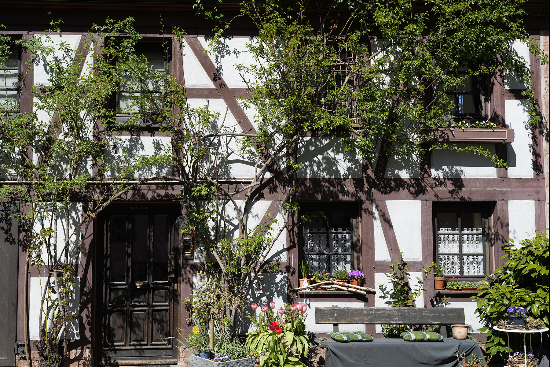 In den Erdgeschossen der Fachwerkhäuser finden sich zahlreiche Geschäfte oder Gaststätten mit fotogenen Auslagen …