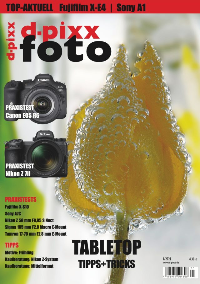 In unserer ersten Ausgabe im Jahr 2021 legen wir den Schwerpunkt auf die Tabletop-Fotografie. Neben grundlegenden Gedanken zu diesem Feld der Fotografie gibt es ein ausführliches How-To zu einer Aufnahme. Ebenso stellen wir Leuchten und ein Stativ-System vor, die bestens geeignet sind.