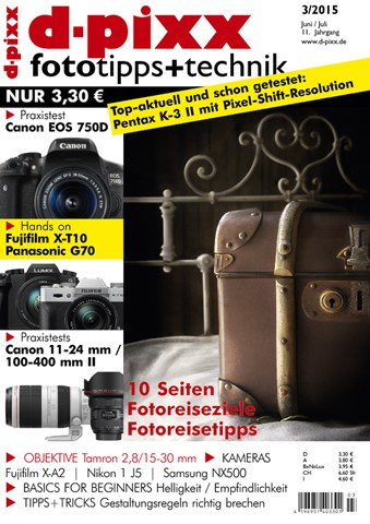 Natürlich kommen auch die Technik-Fans nicht zu kurz. Wir zeigen die Fujifilm X-T10 und die Panasonic Lumix DMC-G70 schon in Hands-on-Berichten und präsentieren sechs andere top-aktuelle Kameras in Praxistests: Canon EOS 750D, Fujifilm X-A2, Nikon Coolpix P900, Nikon 1 J5, Pentax K-3 II, Pentax K-S2 und Samsung NX500. Dazu kommen drei Top-Objektive: von Canon das EF 11-24 mm und das EF 100-400 mm II, sowie von Tamron das 15-30 mm!